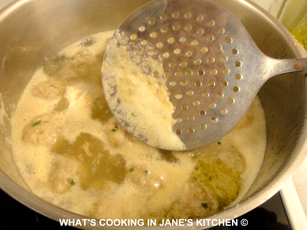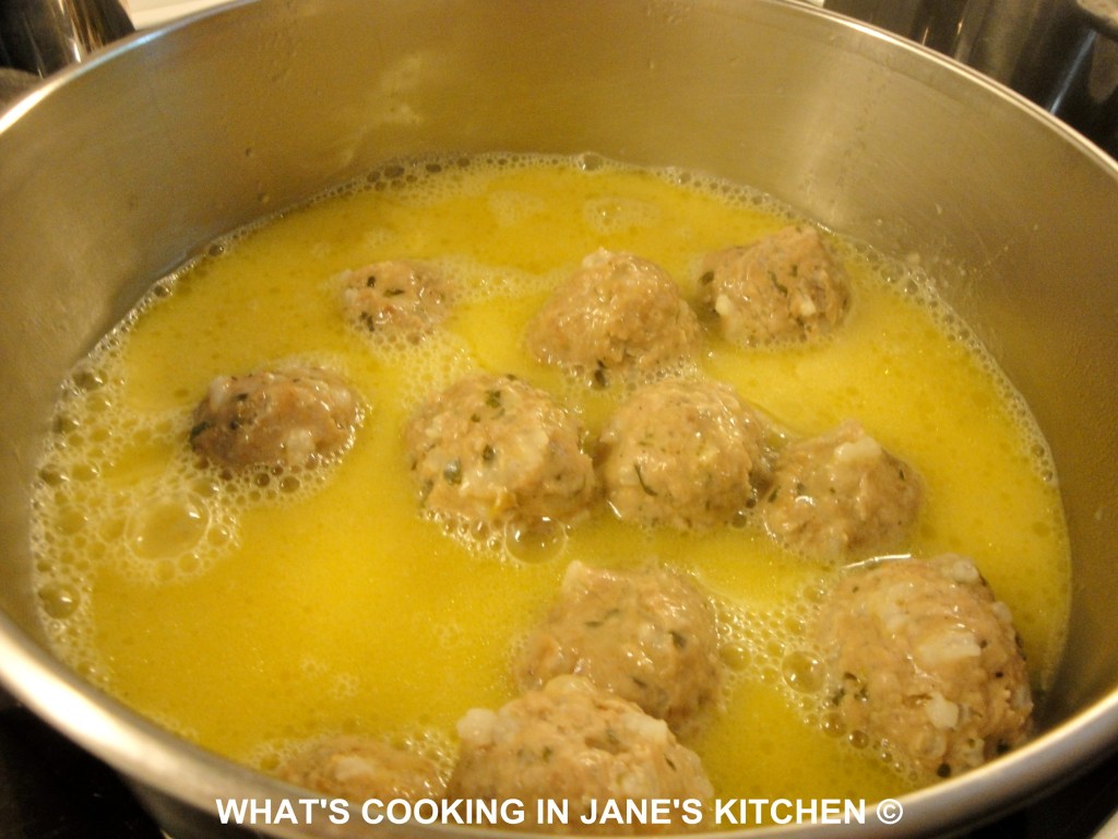 7. Lower the meatballs using a slotted spoon into the stock and simmer for 1/2 hour.