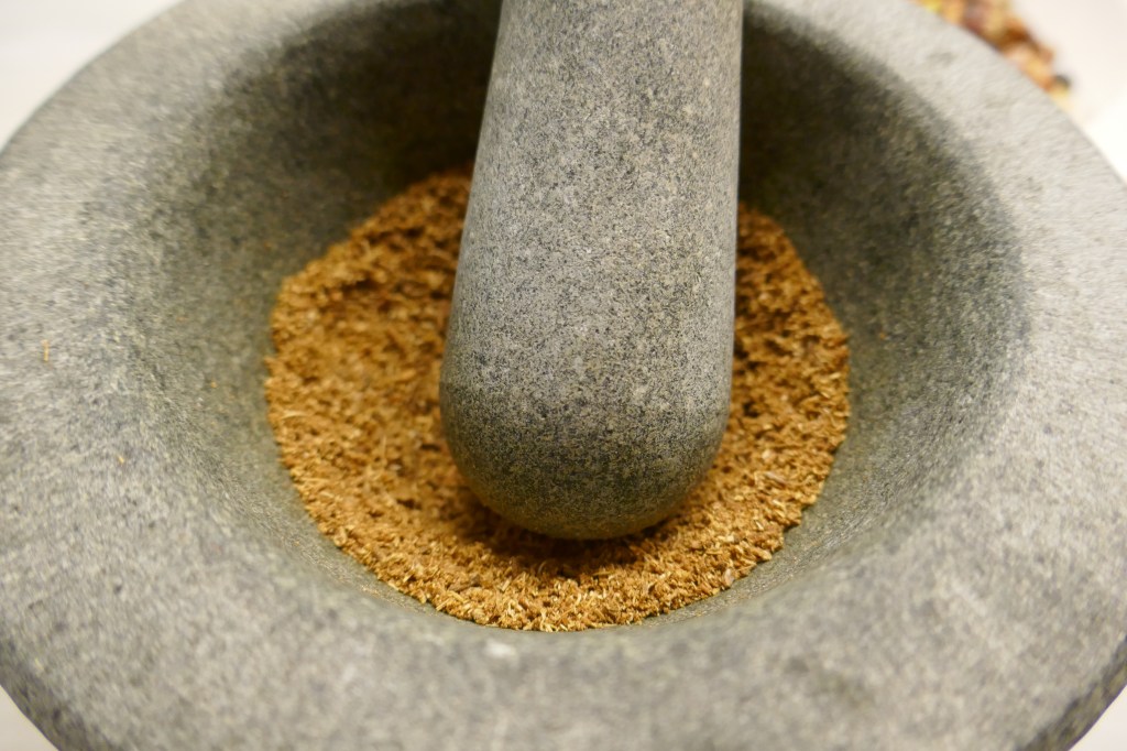 - Place whole spices in grinder or pestle and mortar and grind finely.