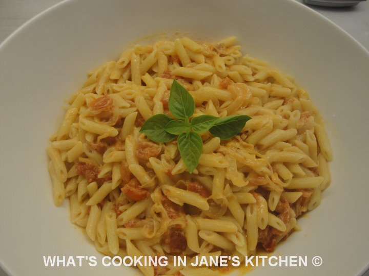 1. Put large saucepan of salted water on to boil for pasta. Place serving dish and plates in oven to warm. 50.C.
