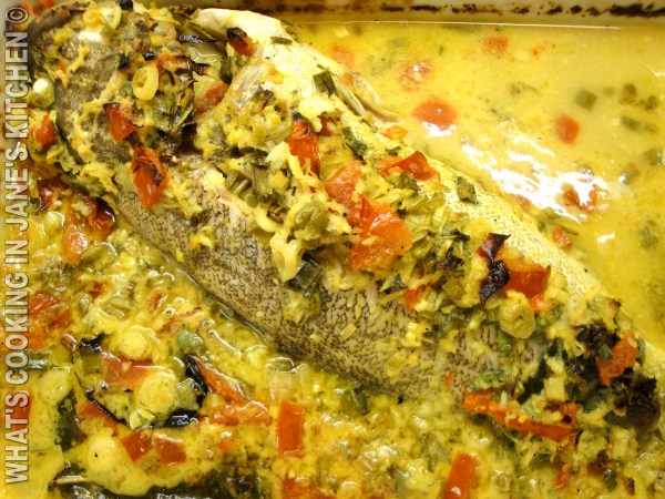 N.B. To check fish is cooked through, make an incision, at thickest part, just by gills, if bones white fish is ready, if pink leave another five minutes, check again.