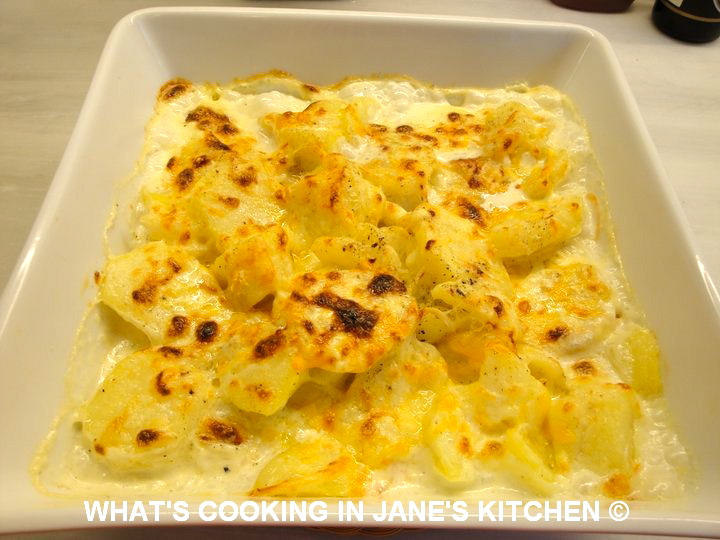 nutmeg, butter,pour over cream and add grated cheese. Repeat until your potatoes are used up. The final