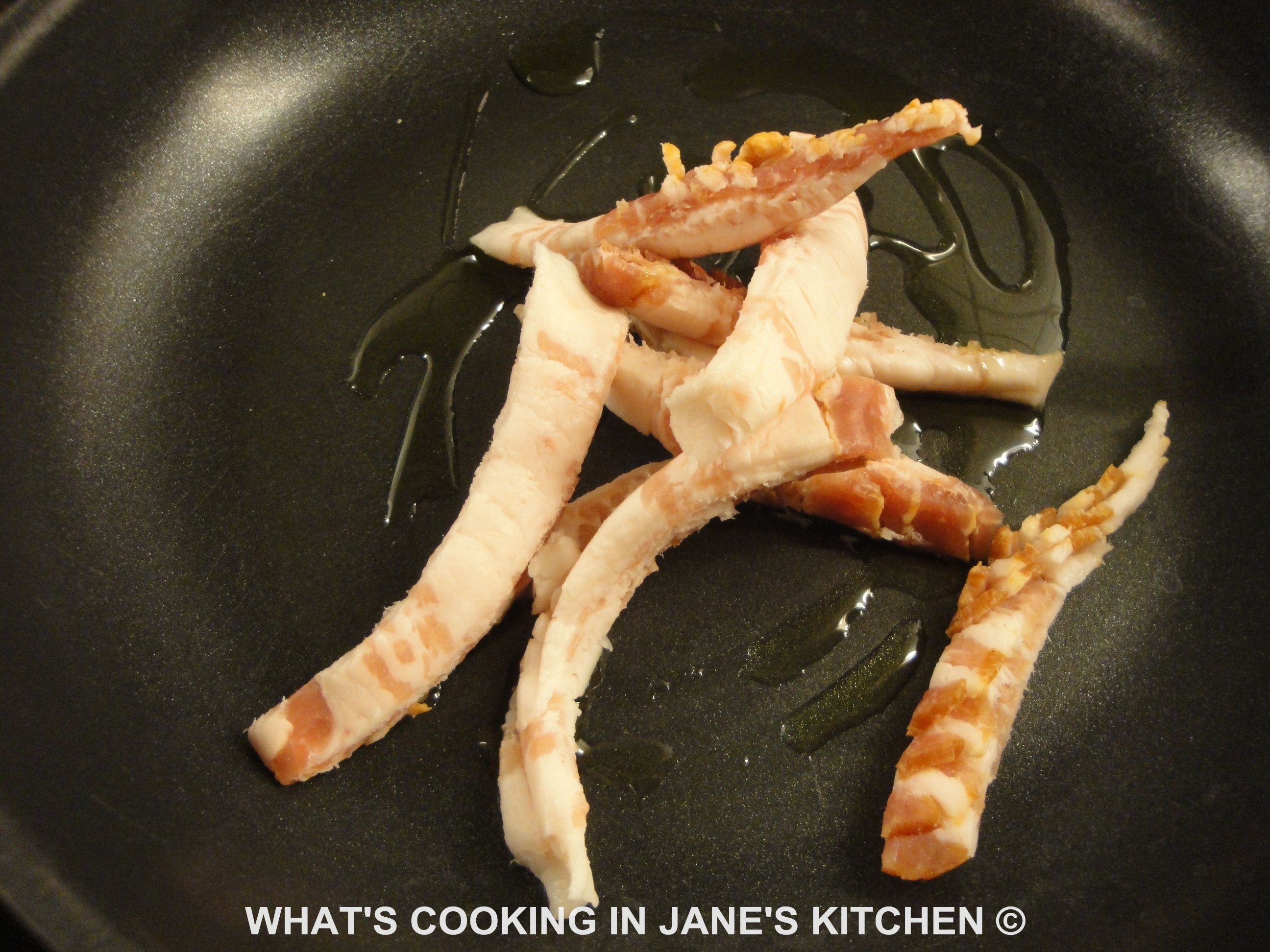 Place in non-stick frying pan with just a touch of oil and fry over a strong heat, stirring to separate bacon.