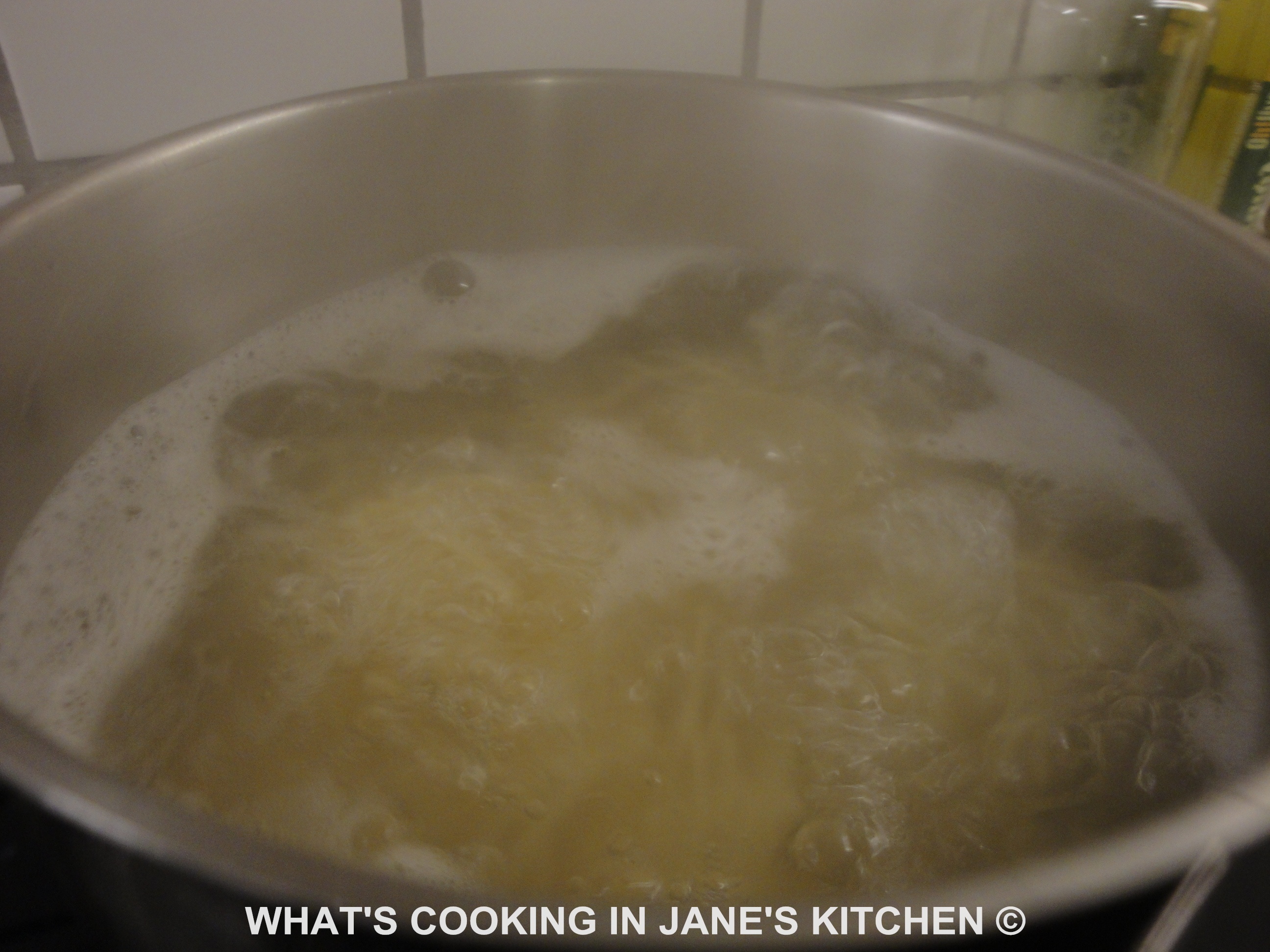 Pasta nearly ready! Try a strand a little before the cooking time is up, as it is VERY IMPORTANT not to over