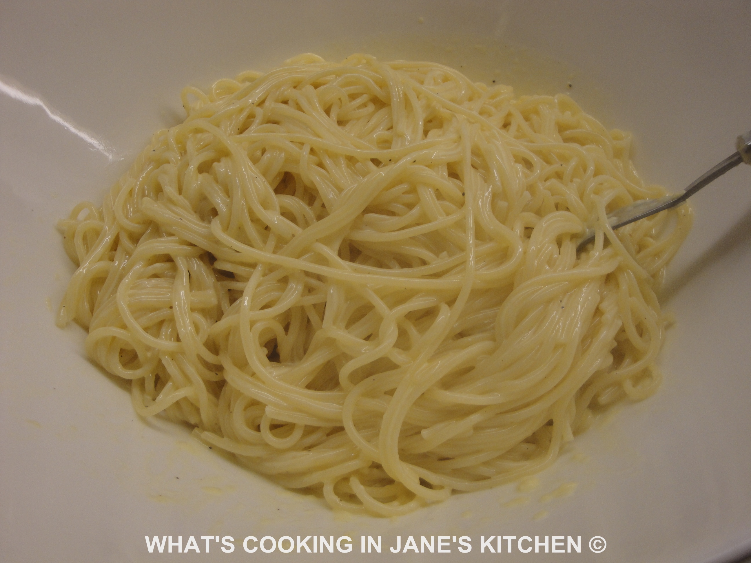 over and over with a fork. The heat of the pasta cooks the egg yolks. By aerating with a fork the egg does