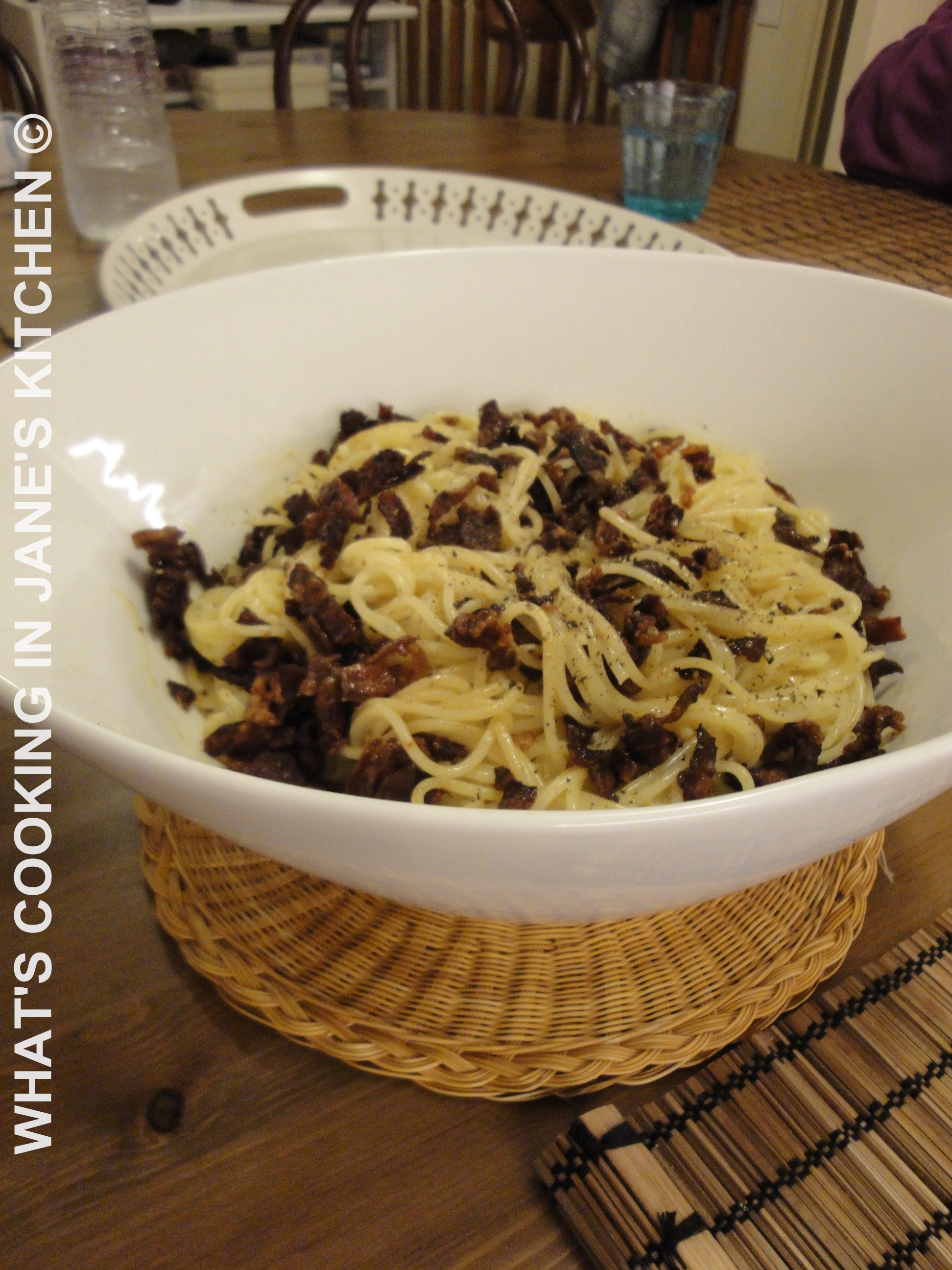 cook the pasta. It needs to be ‘just’ cooked, still a little firm, if it is over-cooked, the Carbonara will be ‘heavy.’