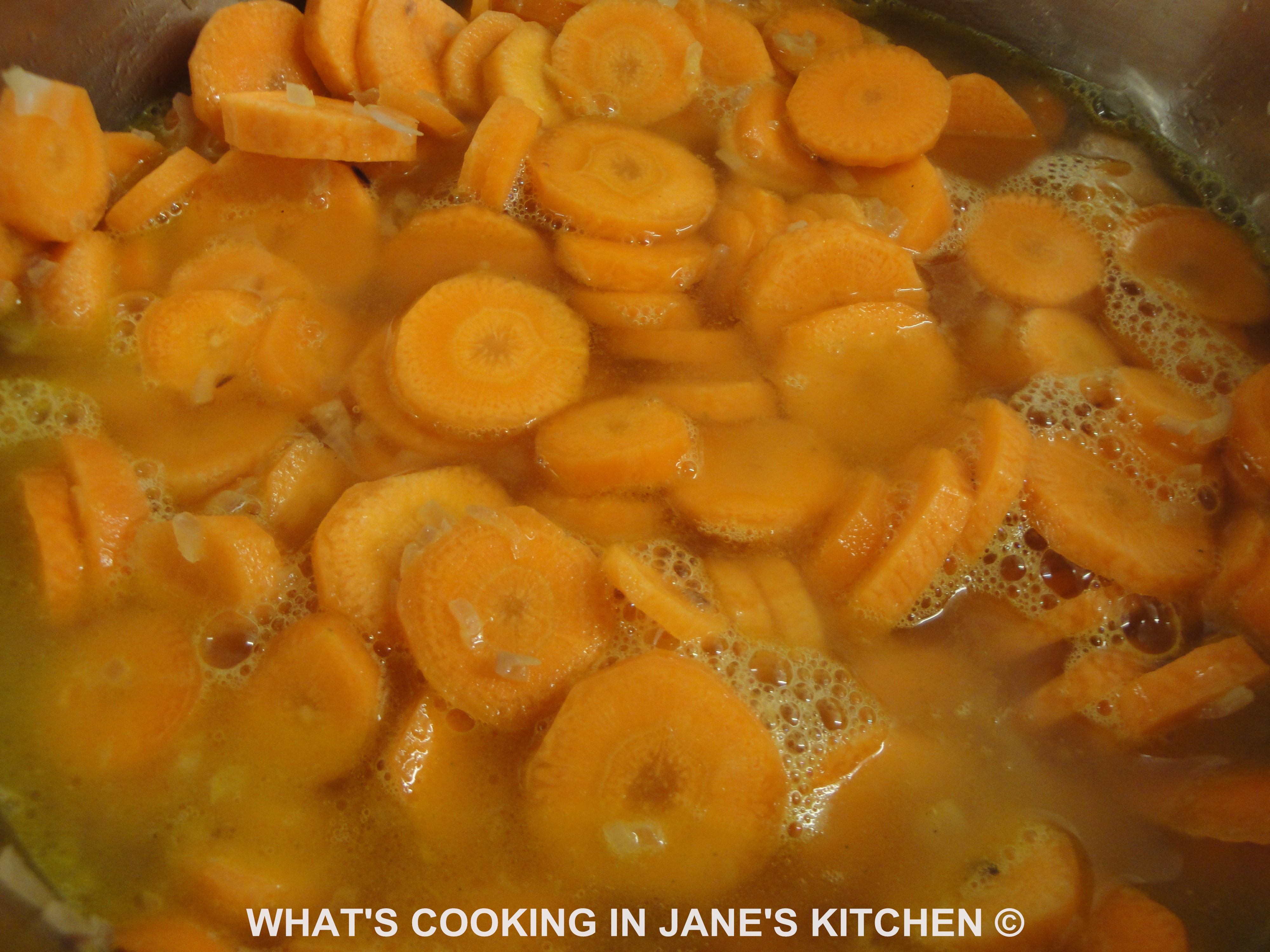 Add enough stock just to cover carrots. Simmer gently until soft, 1/2–3/4 of an hour.