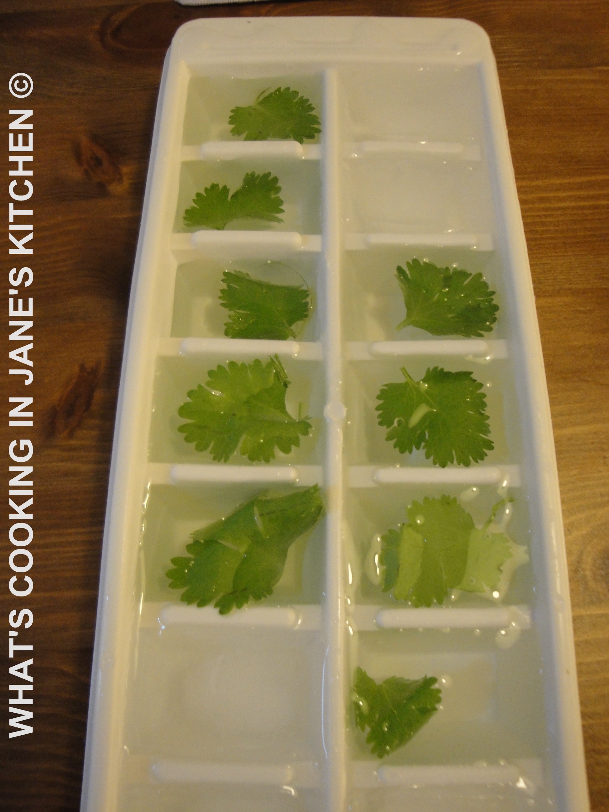 Place a coriander leaf in each square of your ice-cube tray and fill with water. Place in freezer ready for next day!