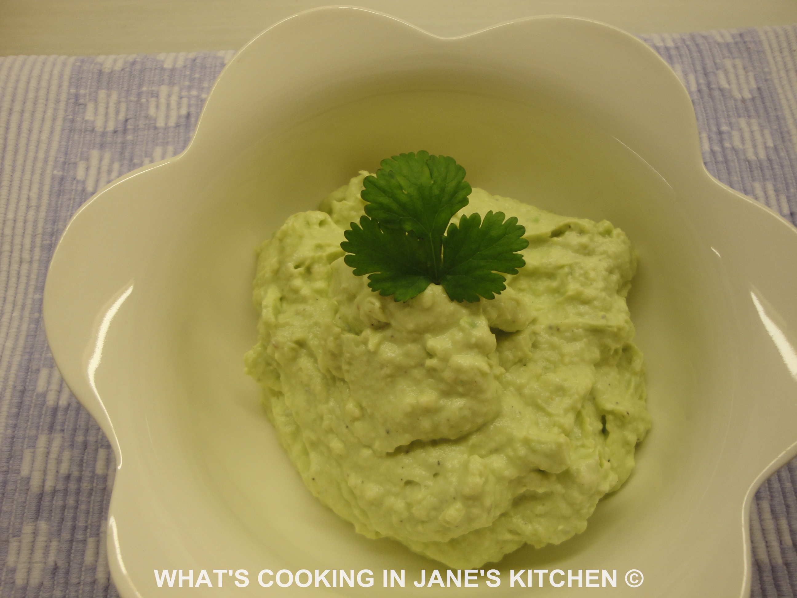 N.B. Make on the same day, preferably 2 hrs before, because the avocado has a tendency to go brown. If this does happen, remove the outer brown layer with a spoon, underneath it will be green.