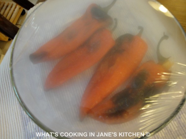 Remove peppers from under grill, place in bowl and cover tightly with cling-film. Leave to sweat, so that