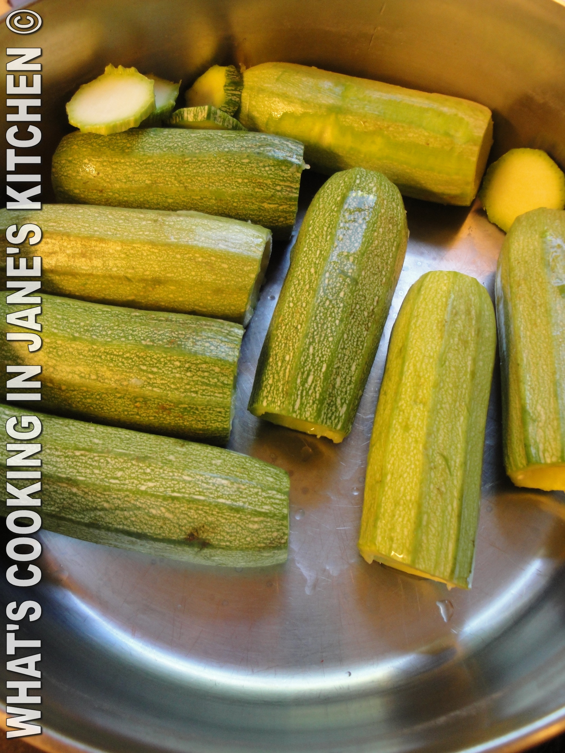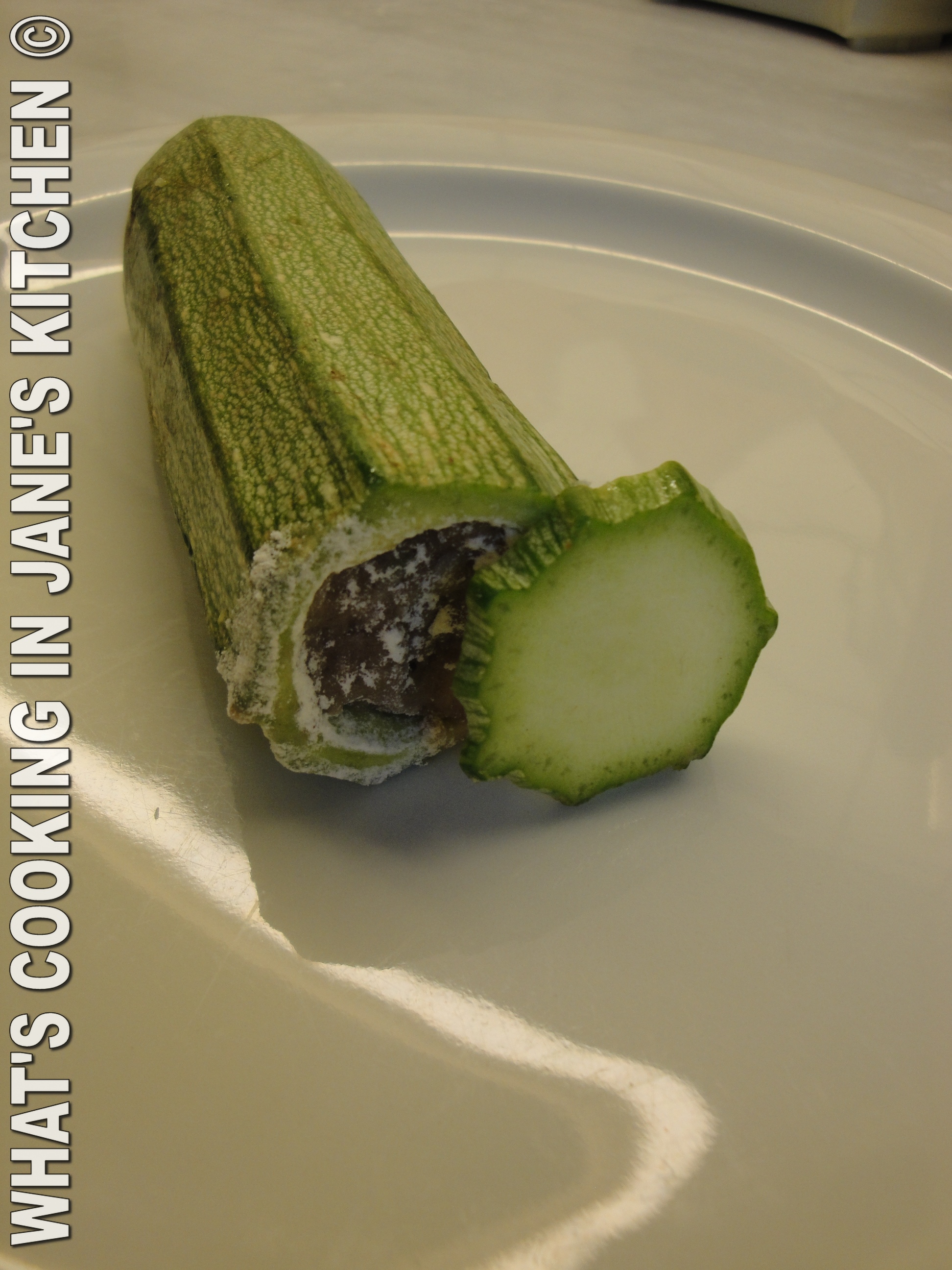 1. Important : Choose nice medium sized courgettes. About 12 cm in length and 4 cm in diameter. This means they are thin and elegant , but thick enough to core, with out breaking the sides.