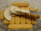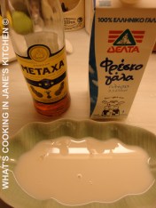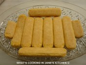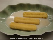 3. Make up dipping bowl of ‘milk and brandy’ and having chosen a suitable serving dish, begin dipping your biscuits for just 3-4 second in the milk and arrange in serving dish.The biscuits will still be firm, but don’t worry, they soften up later.