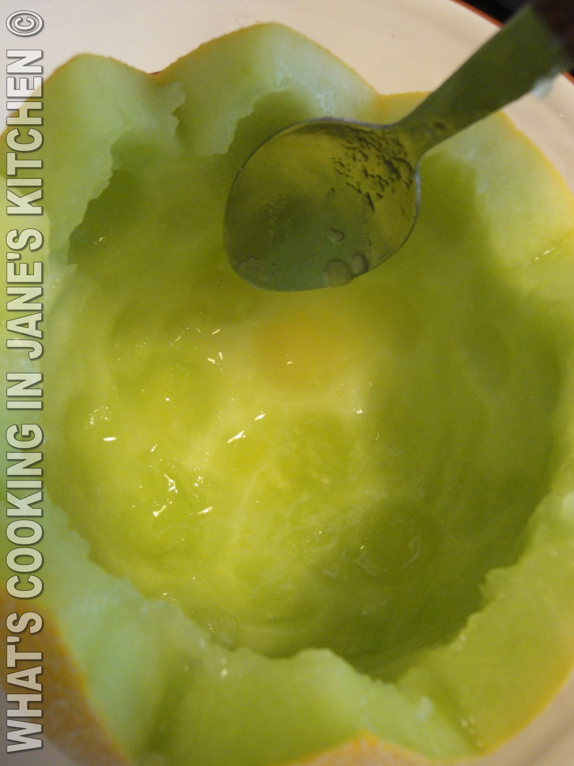 Lift lid carefully off and using a spoon, remove melon seeds.