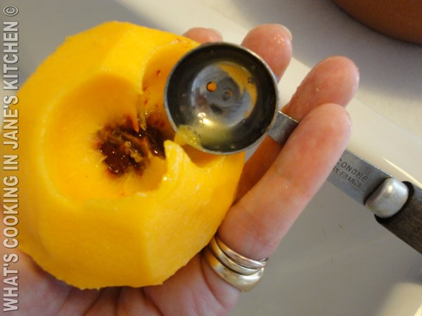 6. Wash your peaches, peel and using a size smaller ‘Melon ball cutter,’ or the same size, repeat the above process.
