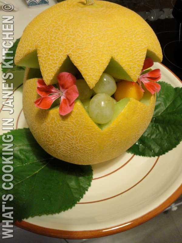 This recipe is a wonderful melon bowl of fruit, which we learnt to make at Cookery School and I have made countless times ever since. It has the surprise element of taking the lid off, to reveal the delicious fruit inside and you can choose any combination to fill your melon bowl.