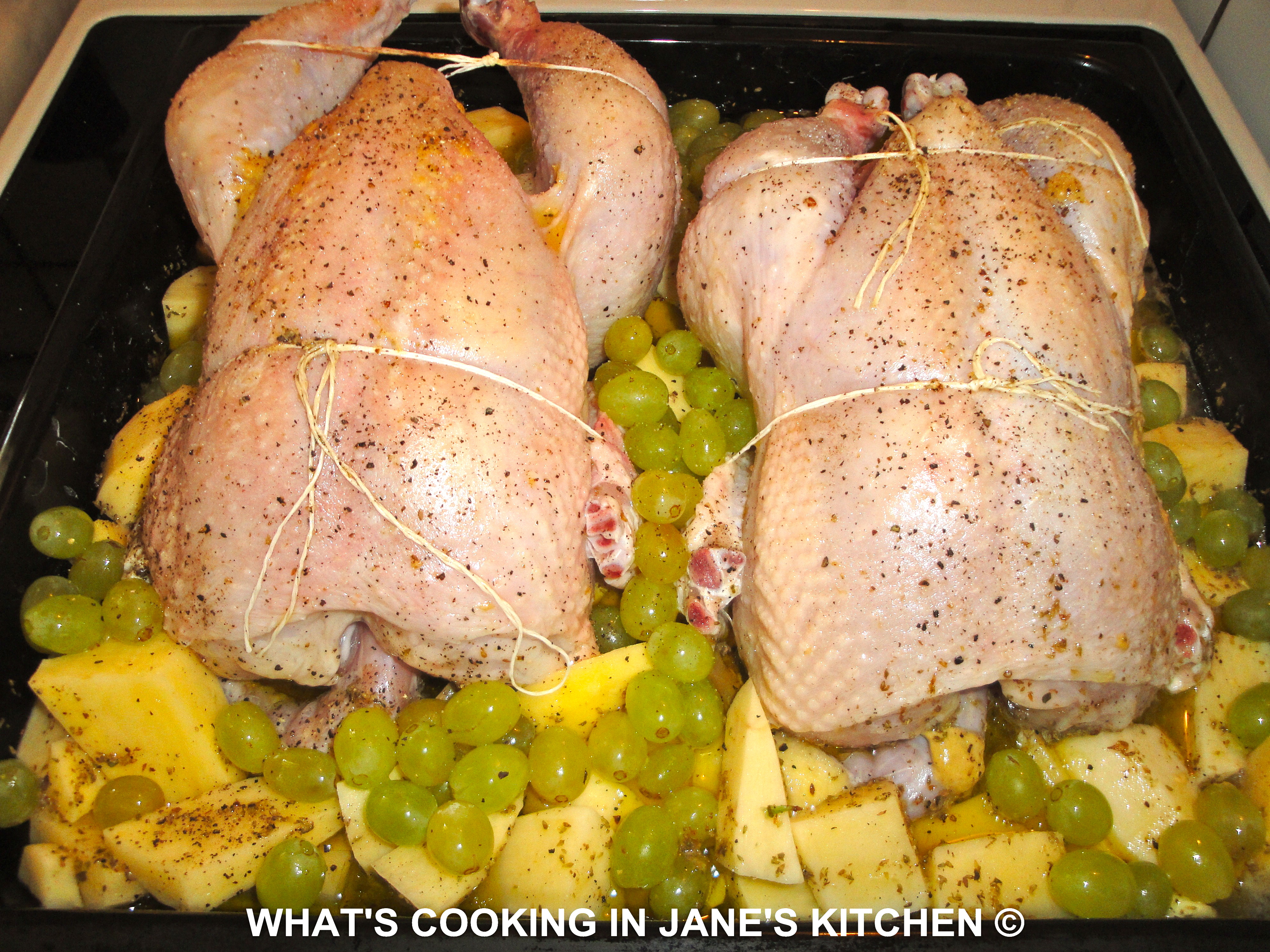 Roast Chicken With Muscat Grapes And Lemon Potatoes ©