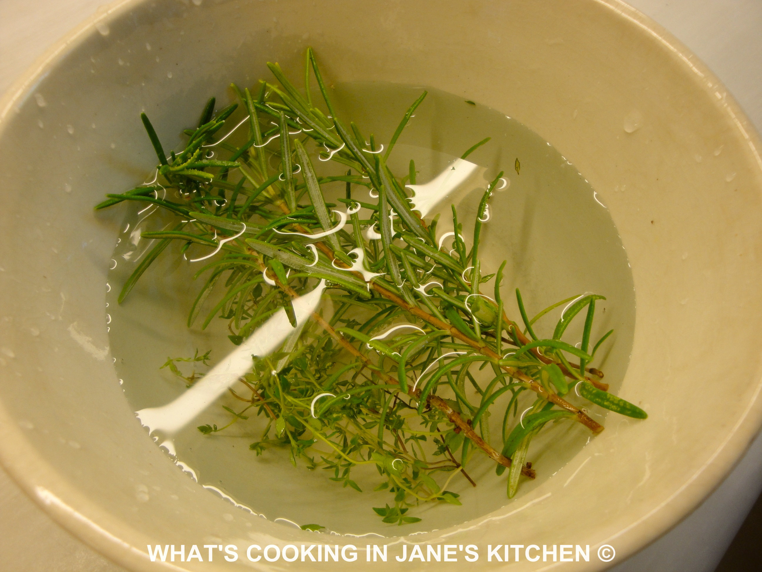 and pepper, in that order and finally, fresh herbs, rosemary and thyme.