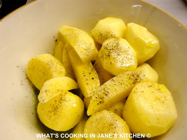 These potatoes are half cut Greek style, the long ones and half cut English style.