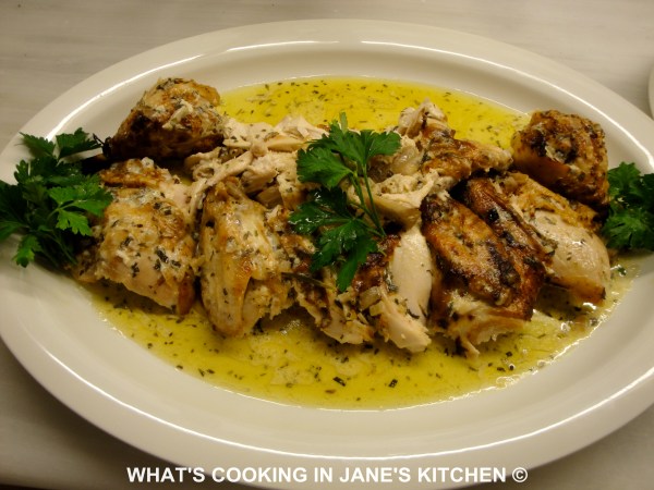 8. Once the chicken is ready, carve into portions and arrange on  heated serving dish.