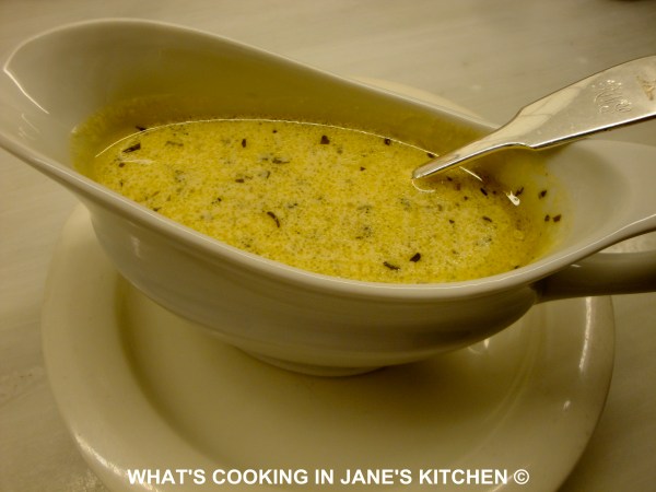 10. Remove potatoes with a slotted spoon and place in heated serving bowl. Reserve  juices in a heated gravy boat to use in Cream lemon Sauce.( See recipe below.)