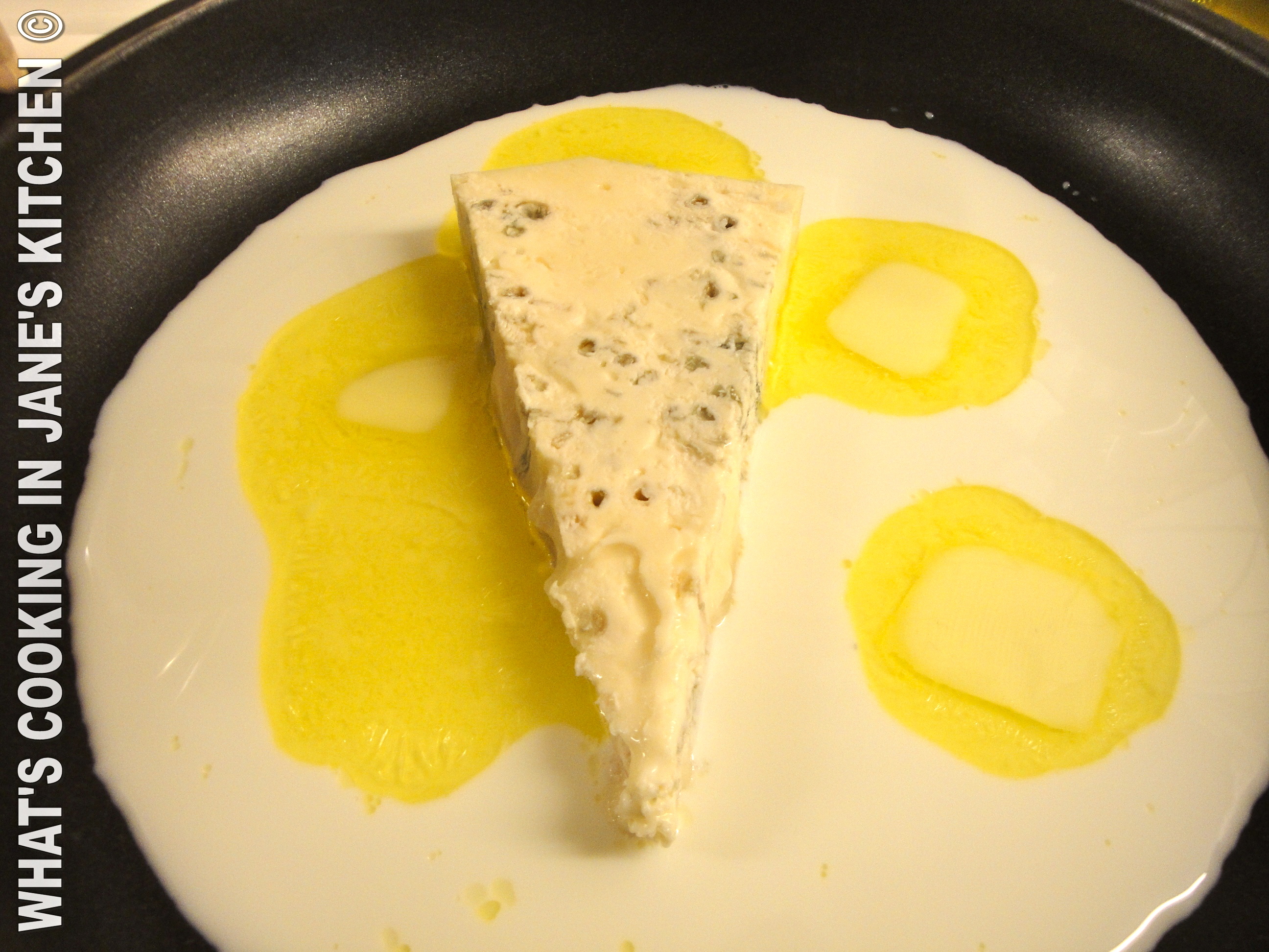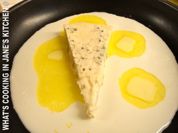 Place gorgonzola in saute pan together with butter and milk and a pinch of salt.
