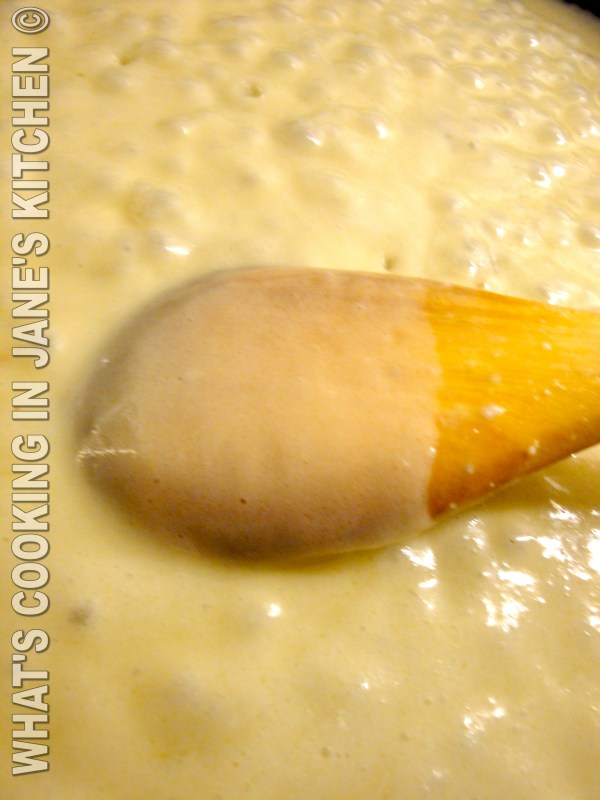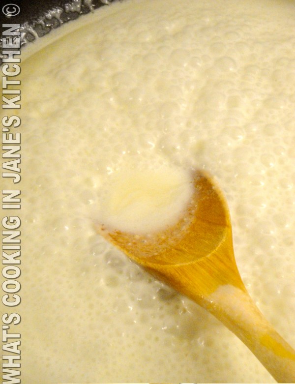Here the cream mixture is being boiled rapidly and thus reducing.