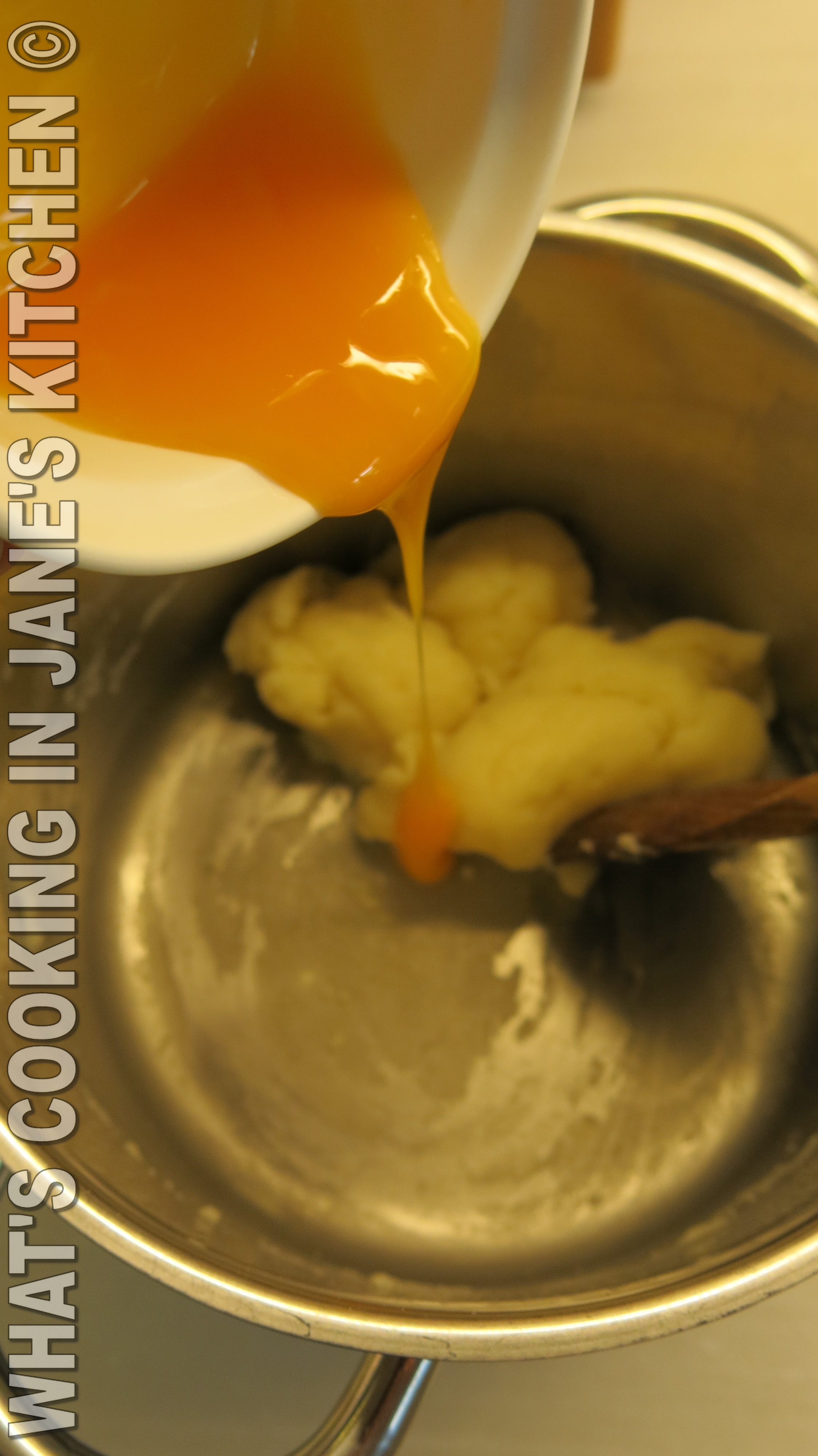 Add yolk and beat hard.