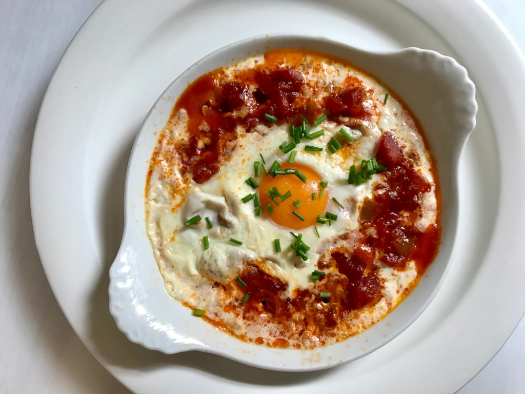 Turkish Baked Eggs And Tomato, Pepper Sauce.